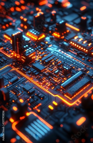 © Sakdecha, Obraz premium Neon Circuit Board Close-Up