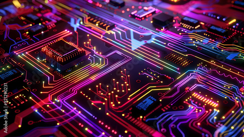 © Maya Crafta, Obraz premium Neon Circuit Board 3D Illustration
