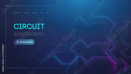 © RDVector, Fototapeta premium Neon Circuit Board Design on Dark Background for Technology Concept