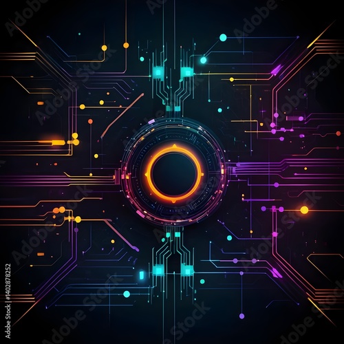 © Teeranan, Obraz premium Neon Circuit Board Technology Background