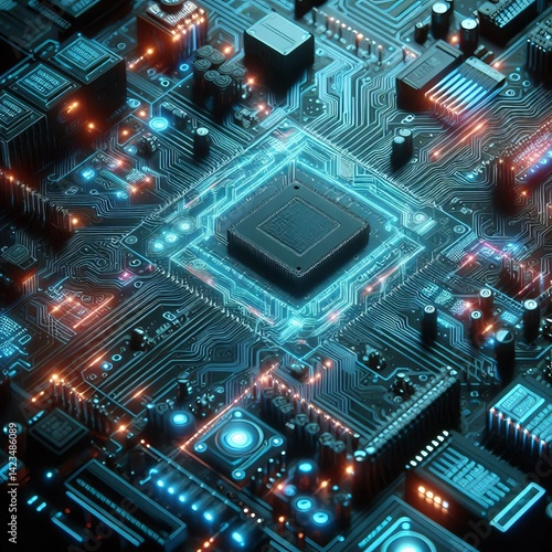 © Andrew, Fototapeta premium Neon Circuit with neon light