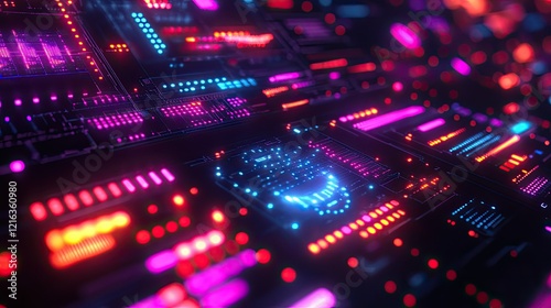 Fototapeta premium Neon Circuitry: A Digital Landscape of Vivid Hues