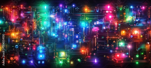 Obraz premium Neon Circuitry: A vibrant digital artwork showcasing interconnected glowing...