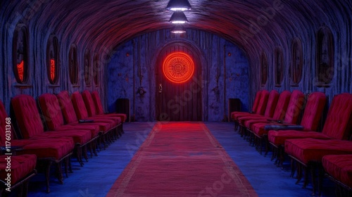 Fototapeta premium Neon circuitry surrounds this futuristic digital house