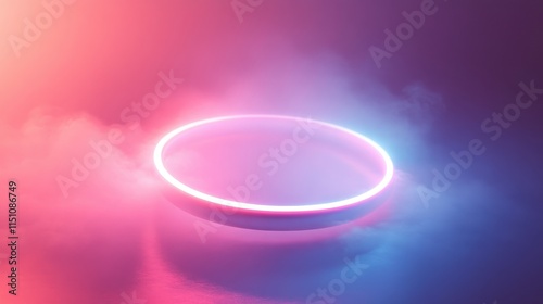 © Theeramisu, Fototapeta premium Neon Circular Light with Colorful Glow and Misty Background