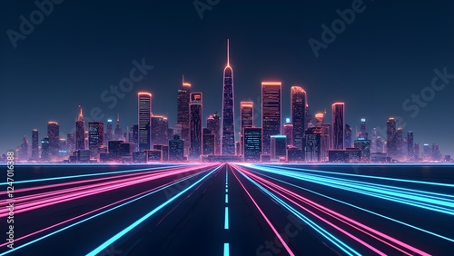 © fast high definition, Fototapeta premium Neon city night view