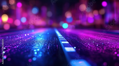 © Lexyat, Fototapeta premium Neon City Nightscape: Glittering Road