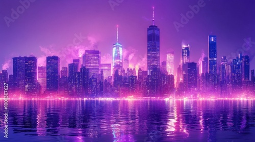 © Sandu, Fototapeta premium Neon City Skyline by Night