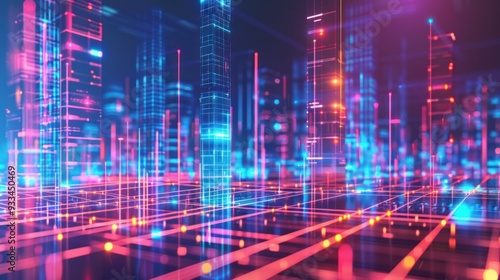 Fototapeta premium Neon Cityscape: A Digital Metropolis