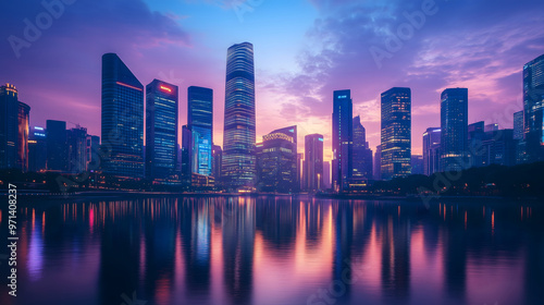 © lasalus, Fototapeta premium Neon Cityscape: A Nighttime Reflection.