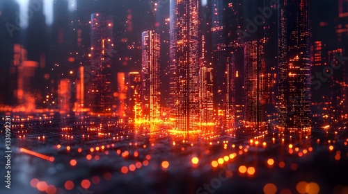 © scrollstudio, Obraz premium Neon Cityscape at Night
