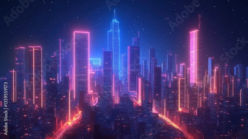 Obraz premium Neon Cityscape at Night: A Futuristic Metropolis