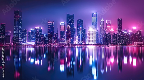 Fototapeta premium Neon cityscape at night, a vibrant metropolis glowing with energy and life