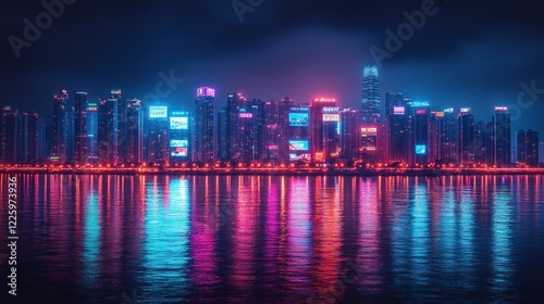 Fototapeta premium Neon Cityscape at Night: A Vibrant Reflection
