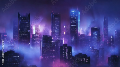 © yuan, Fototapeta premium Neon Cityscape at Night in Fog