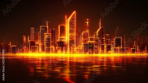 © Artelio, Fototapeta premium Neon Cityscape at Night, with water reflection