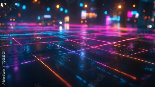 Obraz premium Neon Cityscape Grid Illuminated Night Surface