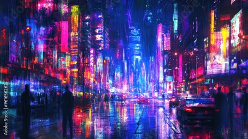 © paukan, Obraz premium Neon Cityscape in the Rain