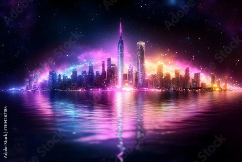 © bcendet, Obraz premium Neon Cityscape Night Reflection