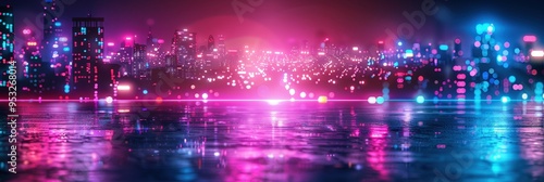 © Thanate, Fototapeta premium Neon Cityscape Reflection.