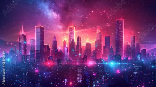 © STwul, Obraz premium Neon Cityscape Under a Starry Night