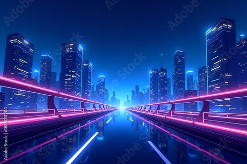Obraz premium Neon Cityscape View Down a Roadway