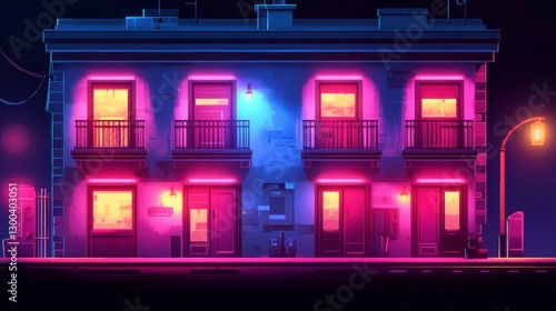 © MyStockz, Fototapeta premium Neon Cityscape with Dramatic Evening Effects