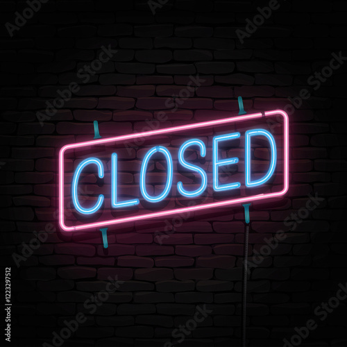 © pascal, Fototapeta premium Neon Closed Sign with Glow on Brick Wall