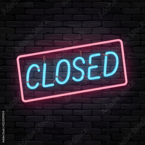 © pascal, Fototapeta premium Neon Closed Sign with Glow on Brick Wall