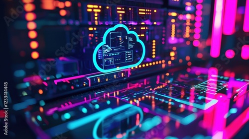 Obraz premium Neon Cloud Computing Server Network Digital Technology