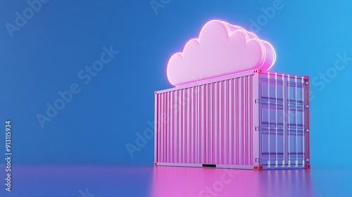 Obraz premium Neon cloud on a shipping container. Futuristic concept of cloud computing and data storage with vibrant, glowing, neon colors.