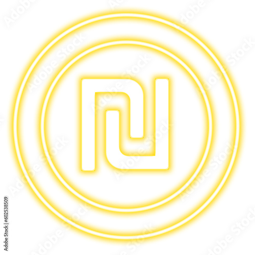 © Nayan, Obraz premium Neon Coin symbols of currencies on a transparent background. Dollar, euro, pound, yuan, ruble. Design element