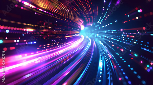 Obraz premium Neon colored geometric speed lines abstract technology background. data,...