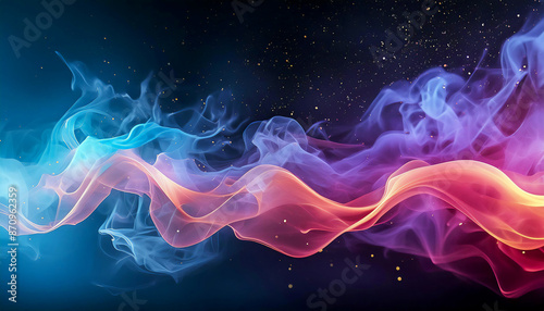 Fototapeta premium Neon colored smoke flying in outer space, with small flying particles of...