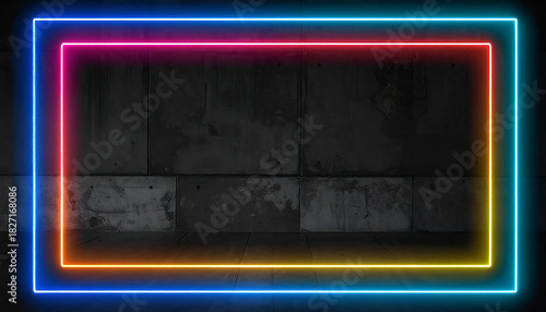 Obraz premium ネオンカラー。フレーム。グレーの背景。Neon colors. Frame. Gray background.