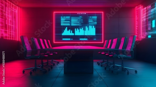 © terat, Fototapeta premium Neon Conference Room Data Analysis