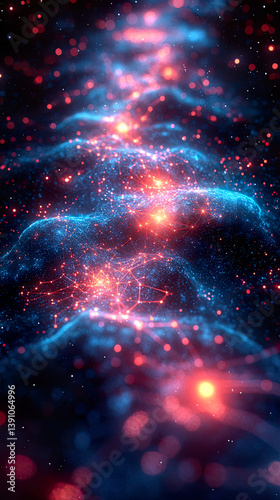 Obraz premium Neon Constellation Maps with Liquid Metallic Paths and Glowing Digital Connections in Cosmic Minimalism