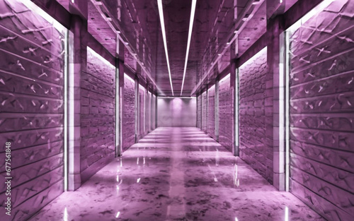 Fototapeta premium Neon corridor with white walls in light purple style. Vector illustration of...