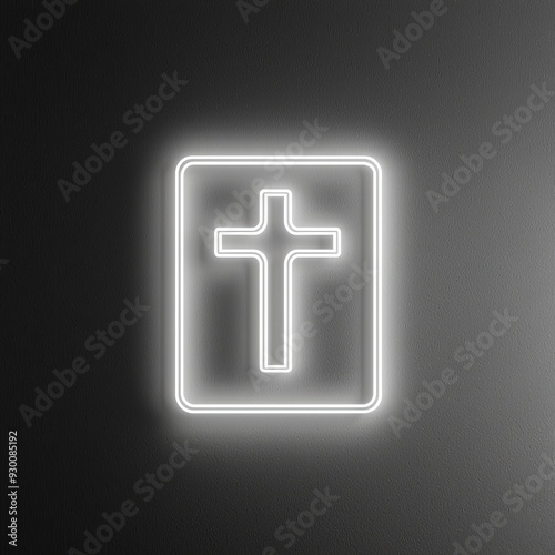 Obraz premium Neon Cross Wall Art. Minimalist Christian Symbol on Dark Background