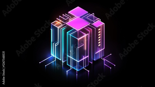 Fototapeta premium Neon Cube Data Network, Server, Abstract, Digital, Technology
