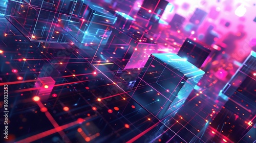 Obraz premium Neon Cubes: A Digital Metropolis