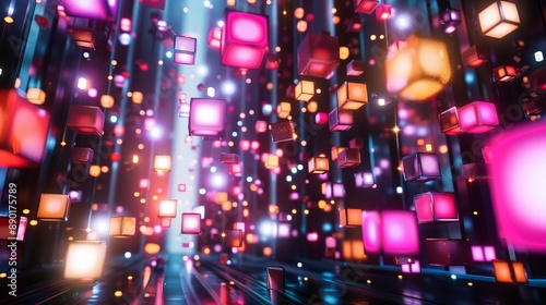 Obraz premium Neon Cubes Falling Through Digital Space