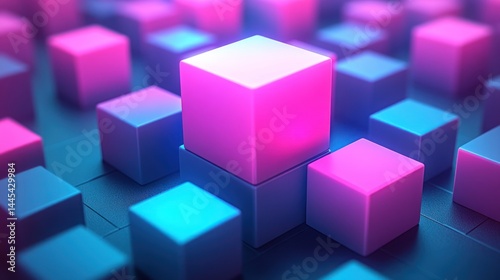 © djatu, Obraz premium Neon cubes in a grid arrangement