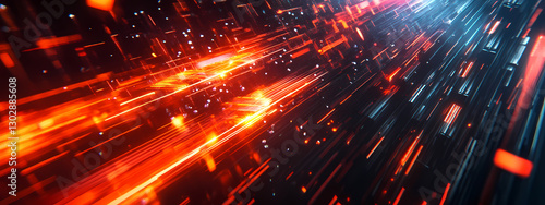 © Manuel, Fototapeta premium Neon Cyberpunk Speedlines with Carbon Texture