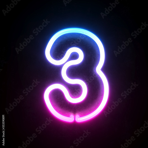 Naklejka premium Neon 3d font, blue and pink neon light 3d rendering, number 3