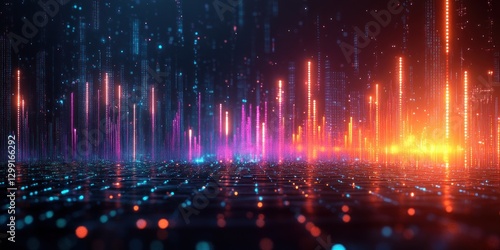 Fototapeta premium Neon Digital Cityscape: A Futuristic Vision of Technology and Light