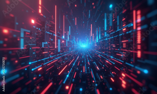 Naklejka premium Neon Digital Cityscape, Futuristic Data Stream - Metaverse