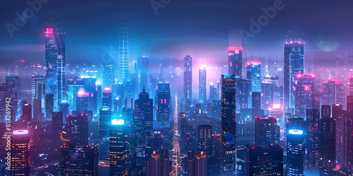 Fototapeta premium "Neon Dreams: A Cyberpunk Cityscape" / "Futuristic Metropolis: Neon Nightlights"