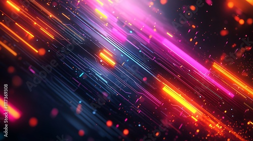 Fototapeta premium Neon energy trails dynamic abstract art in dark space