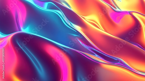 Obraz premium Neon energy wave pattern with bright rainbow hues, modern abstract flow on a...